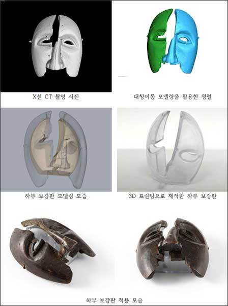 또한, X선과 적외선, 자외선을 활용한 비파괴조사를 통해 맨눈으로 살피기 어려운 탈의 내부 구조와 보수 흔적을 확인하는 등 과학적 조사기술을 활용한 보존처리 성과도 확인할 수 있다. 특히, 병산탈(을)은 두 개로 쪼개져 보강재를 부착한 채 보관되어 왔는데, 문화유산보존과학센터의 보존처리 과정에서 기존의 보강재 제거 뒤 X선 컴퓨터단층촬영(CT)과 3차원 입ㆍ출력(3D 스캔·프린팅) 자료 및 기술을 병합하여 원형 접합 각도를 유추하고 하부 보강판을 제작하여 보존처리가 진행된 과정을 살펴볼 수 있다.