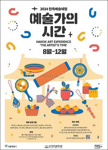 [우리문화신문=이한영 기자] 돈의문박물관마을(시장 오세훈)에서 24일 14시부터 8월부터 진행되는 하반기 ‘한옥 예술 체험-예술가의 시간(이하 ‘예술가의 시간’)’ 예매를 진행한다. 전통 문화상품을 직접 만들어볼 수 있는 ‘하루 수업’인 ‘예술가의 시간’은 서울 100년의 과거와 현재를 이어 ‘서울 사람’의 삶의 경향을 발굴하고 시민들의 일상 경험을 확대하고자 진행되는 프로그램이다.