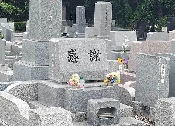 "언제부터인지 일본 무덤의 묘비에는 감사(感謝), 자(慈, 자비), 반(絆, 인연), 락(樂, 즐거움), 애(愛, 사랑)…. 이런 문구들이 나타나기 시작했어요. 제 생각으로는 20년을 안 넘는 것 같은데요"
