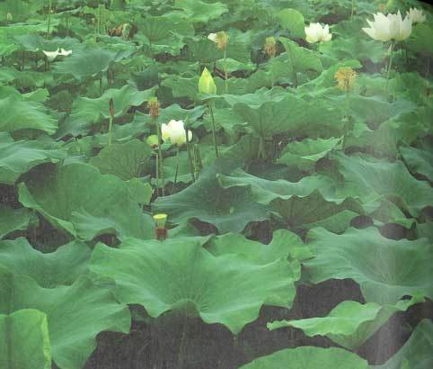 연잎의 색인 하엽색은 어두운 초록을 뜻하고, 실제로 연잎에서 채취하여 단청의 원료로 썼다. 고려시대 절에서 단청이 발달하면서 하엽색이 단청의 중심색이 되었다. 단청에서 보던 초록색이 연잎에서 채취한 ‘하엽색’이었다는 점이 이색적으로 느껴진다.