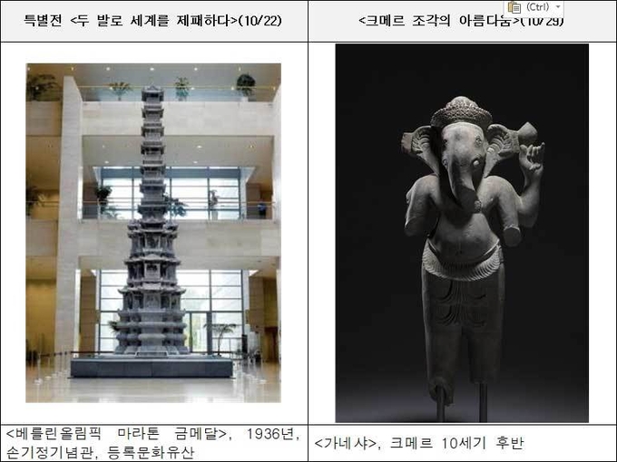 기증관에는 첨단 영상 기법으로 드러난 목조 불상의 내부와 제작 방법을 살펴볼 수 있는 ‘CT로 본 목조흑칠좌상의 제작기법’, 현대 판화의 세계를 조망하는 ‘유강렬과 현대판화’, ‘책으로 만나는 박물관: 손기정 기증 청동 투구 등’이 마련되어 있다. 이와 함께 특별전 《두 발로 세계를 제패하다》에 대한 해설이 진행되는데, 이 전시는 1936년 베를린올림픽에서 민족의 자긍심을 드높인 손기정 선수와 광복 이후 한국 마라토너들의 활약, 그리고 1988년 서울 올림픽 성화 봉송의 감동적인 순간을 조명한다.