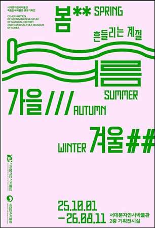 [우리문화신문=김영조 기자] 국립민속박물관(관장 장상훈)은 서대문자연사박물관(관장 노정래)과 함께 2025 K-museums 《봄, 여름, 가을,겨울 – 흔들리는 계절》공동기획전을 연다. 오는 10월 1일(수)부터 2026년 8월 30일(일)까지 서대문자연사박물관 2층 기획전시실에서 열리는 이번 전시는 기후 위기 속에서 한국의 사계절을 중심으로, 기후 변화 속에서 적응해가는 인간과 생존에 위협을 받고 있는 동·식물들의 이야기를 담아냈다.