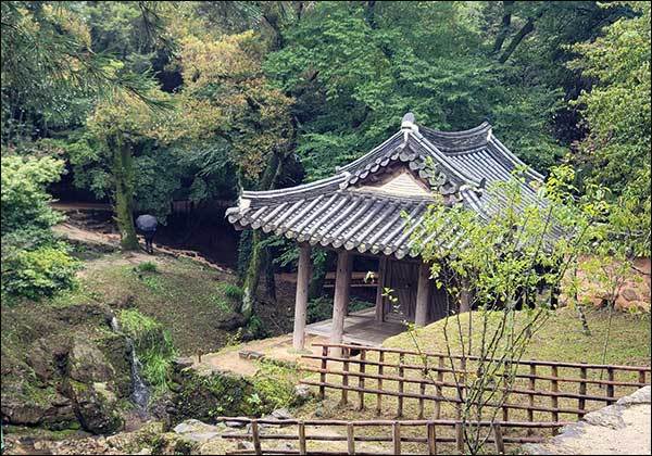직업상 일본의 고찰, 정원, 신사(神社) 등등 수없이 드나들면서 한때는 그곳들이 ‘질서정연하고 잘 다듬어진 아름다운 곳’이란 생각을 해본 적이 있다. 교토의 유명한 돌정원(石庭)이 있는 용안사(龍安寺, 료안지) 정원만 해도 고산수(枯山水, 가레산스이)라고 해서 돌이나 모래만을 배치하여 산수를 나타내는 곳으로 년중 관광객들로 절 문턱이 닳아 없어질 지경이다. 그러나 담장을 쌓고 그 안에 크고 작은 돌로 만든 교토의 돌정원 같은 구경거리는 없지만, 촉촉한 가을비 소리를 들으며 제월당 툇마루에 앉아 대나무숲과 정원을 가로질러 흐르는 계곡 물소리를 듣는 정서는 한국의 정원이 아니면 맛볼 수 없는 정경이란 생각이 든다.