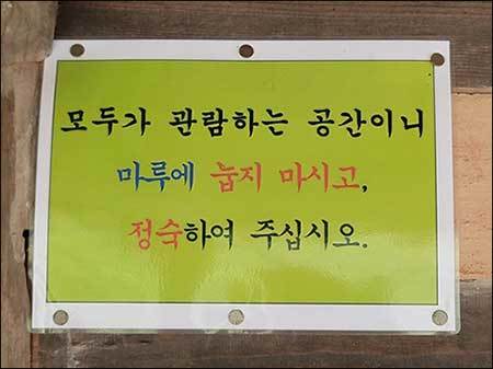 세종임금이 한글 창제 뒤 100년이 지난 시점은 그만두고라도 온 나라의 정자 등에 가보면 지금으로부터 100년 전의 경우에도 한자 시는 여전히 편액 속을 장식하고 있는 것을 볼 수 있다. 그 시대에는 어쩔 수 없는 환경이었다 해도 후대의 우리들이 찾아가서 그 내용을 알 수 있는 조치는 얼마든지 할 수 있는 것 아닐까? 한글 번역본을 툇마루에 놓아두거나(코팅해서 읽고 그 자리에 두라고 하거나) 따로 설명판을 만들어 두거나 아니면 누리집을 활용해도 좋을 듯하다.(정보무늬 활용도 한 방편)