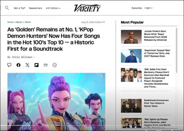 과거에 우리들은 라디오만 틀면 팝송이 흘러나와 들어야 했던 시대를 살았다. 번안곡이 성행했고, 사람들은 영어 가사를 따라 부르기 위해 갖은 노력을 했다. 국내 가수보다는 비틀스와 뉴 키즈 온 더 블록 같은 팝 가수를 동경하던 시대였다. 하지만 이제 전 세계 어디에서든 케이팝이 들리는 시대가 도래했다. 방탄소년단은 미국 최고 권위 음악 시상식인 ‘그래미 어워즈’에 섰고, 블랙핑크는 아시아 여성 가수 처음으로 빌보드와 영국 공식 차트의 주요 부문을 석권하는 역사를 썼다. 이번 ‘케데헌 현상’이 이러한 큰 흐름의 분수령을 이루고 있다.