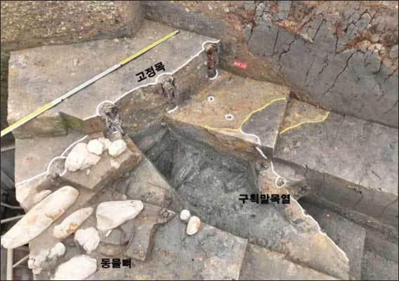 또한, 성벽 외부에서는 말뼈와 땅의 경계를 구분하기 위해 일정한 간격으로 말뚝(말목)들을 박아 놓은 구획말목열이 확인되었다. 성벽 내부에서는 고정목과 협판이 발견되었는데, 가속질량분석기(AMS)를 사용한 연대측정 결과가 각각 460~548년, 480~540년으로 확인되어 처음 축성한 이후 6세기 초 대대적인 성벽의 수ㆍ개축이 있었음을 추정할 수 있다. 이와 같은 복합적인 성벽구조와 다양한 부속시설들로 미루어 보아 「함안 가야리 유적」은 아라가야의 최전성기에 축조된 왕성으로 평가된다.