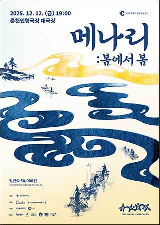 [우리문화신문=이한영 기자] 춘천문화재단(이사장 박종훈)이 주최하고 (사)문화프로덕션도모(이사장 황운기), (사)한국전통문화예술원 태극(대표 심재랑)에서 공동 주관한 <메나리: 봄에서 봄>이 오는 12월 12일 금요일, 저녁 7시 춘천인형극장 대극장에서 열린다. 이번 작품은 2009년 화천에서 선보인 ‘낭천별곡’을 시작으로, 북한강 냉경지 소금배 이야기를 토대로 발전해 온 지역 창작 시리즈다. 이후 2014년 ‘영서메나리’ 공연으로 이어지며 명맥을 유지해 왔고, 10년의 과정을 거쳐 이번 <메나리: 봄에서 봄>으로 완성됐다.