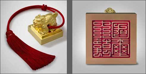 * 대한국새: 외교 문서ㆍ조약 비준서ㆍ훈장 증서 등 국가 으뜸 권한이 담긴 문서에 사용되었으며, ‘大韓國璽’라는 전서체 인문과 다섯 발톱 용뉴(龍紐, 용모양 손잡이)는 조선의 귀뉴(龜紐, 거북이모양 손잡이)를 대신해 황제국의 위상을 드러내고, 새보(璽寶, 도장) 가운데에서도 가장 높은 위계를 지닌 대한제국 국권을 상징함.