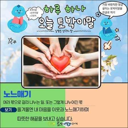 갑작추위가 옷깃을 여미게 하는 아침, 마음을 따뜻하게 덥혀주는 기별이 들렸습니다. 한뉘(평생) 한약방을 꾸리며 번 돈을 아낌없이 배움이와 이웃에게 내어주셨던 진주의 큰 어른, 김장하 스승님의 이야기입니다. 스승님께서 꾸리시던 옛 '남성당 한약방'이 고장 사람들의 배움터인 '교육관'으로 다시 태어난다고 합니다. 바라는 것 없이 베푼다는 뜻을 이어받아, 이제는 집마저 내어놓으신 스승님의 삶을 보며 저는 문득 '기부'나 '나눔'이라는 말보다 더 깊고 튼튼한 우리말 하나를 떠올렸습니다. 바로 오늘 여러분과 나누고 싶은 토박이말, '노느매기'입니다.