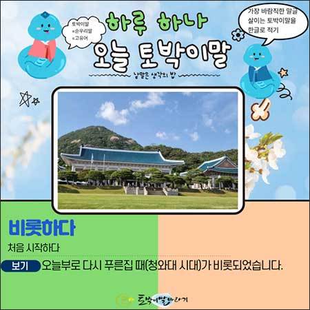 이와 같은 날을 말할 때, 우리는 흔히 '새로운 시대가 시작되었다'고 말합니다. 하지만 '시작(始作)'이라는 한자말은 어쩐지 틀(기계)처럼 일을 벌인다는 느낌이 들어 조금 메마르게 다가옵니다. 오늘 같은 날, 우리 가슴속에 더 깊은 울림을 줄 토박이말이 있습니다. 바로 '비롯하다'입니다.