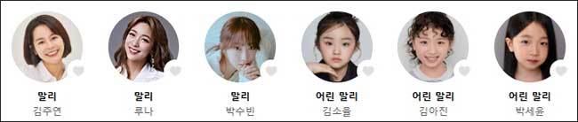 출연진은 말리 역에 김주연ㆍ루니ㆍ박수빈, 어린 말리 역에 김소율ㆍ김아진ㆍ박세윤, 레비 역에 조용휘ㆍ조성필, 혜리 역에 이지숙ㆍ한유란, 우진 역에 정의욱ㆍ윤석원, 조각 역에 이란서ㆍ백두진ㆍ박혜원이 무대에 오른다.