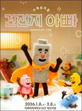 [우리문화신문=이한영 기자] 오는 1월 8일부터 2월 8일까지 서울 서대문구 이화여대길 52. 이화여자대학교 ‘영산극장’에서는 뮤지컬 <건전지 아빠> 재청공연이 열린다.