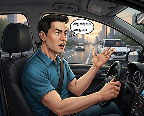 가끔은 저도 급한 마음에 끼어들기를 시도하곤 합니다. 그때는 '나는 지금 너무 급해, 어쩔 수 없어!', '이 정도는 괜찮잖아!'라며 제 행동을 합리화합니다. 순간의 편의를 위해 다른 운전자에게 잠시나마 불편을 주거나 위험을 감수하게 하는 행동임에도, 제 상황에 대한 이해를 구하듯 스스로 설득하곤 합니다.