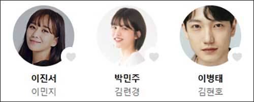 출연진은 딸 이진서 역에 이민지, 아버지 이병태 역에 김현호, 지적장애 동생 이진우 역에 권솔, 정신과 의사 박민주 역에 김련경, 늙은 상훈 역 문석희 역에 문석희가 무대에 오른다,