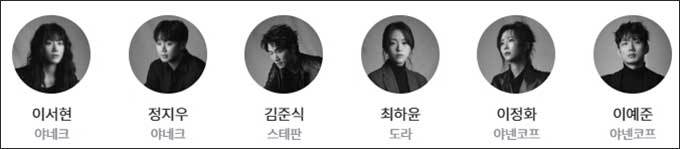출연진은 야네크 역에 이서현ㆍ정지우, 스테판 역에 김준식, 도라 역에 최하윤, 야넨코프 역에 이정화ㆍ이예준, 부아노프 역에 이사계ㆍ김민호, 스쿠라토프 역에 최승하ㆍ서주원, 총독부인 역애 전재희ㆍ이재은이 무대에 오른다.