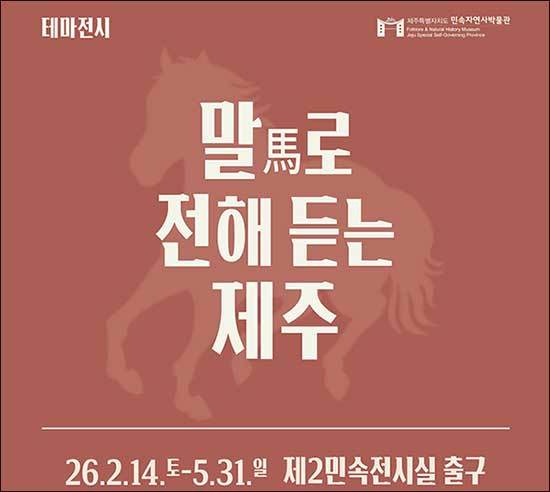 제주민속자연사박물관은 2026년 병오년 붉은 말의 해를 맞이하여, 예로부터 제주의 역사와 궤를 같이하며 제주인들의 일상생활과 노동, 의례 전반에 깊이 관여해 온 말의 이야기를 다층적으로 풀어낸 주제전시를 마련하였다.