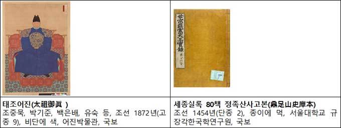 <기록의 보고를 열다>에서 ‘보고’는 전주사고와 외규장각을 비유한 것이었지만, 평소에 보기 어려운 국보와 보물이 다수 출품되면서 전시실 전체가 보물창고가 되었다. 그중 《세종실록》과 <태조어진>, <흑장궤>는 문화유산의 안전을 위해 3월 24일까지 4주만 전시한다. 그 밖에도 조선 건국을 도왔던 이성계의 이복형제인 이화를 개국공신으로 임명한 문서 <이화개국공신녹권>(1392), 전통적 천문도와 서양에서 유입된 신법천문도를 나란히 도해한 <신구법천문도>, 1719년 숙종과 11명의 관료의 기로소 입회를 기념하는 《기해기사첩》은 모두 지정문화재이다.