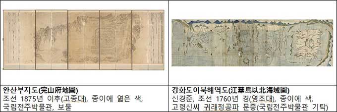 더불어 19세기 전주부성을 그린 회화식 병풍 <완산부지도>, 신경준이 강화도부터 압록강 하구까지 서해안 지형을 자세하게 도해한 <강화도이북해역도>는 또 다른 형태의 기록유산이다. 전주와 강화도를 강조한 각각의 지도에서 실록과 의궤가 이동했던 장소를 짚어볼 수 있다. <완산부지도>에 그려진 경기전과 전주사고의 옛터, <강화도이북해역도>에서 크게 강조된 강화도 속 정족산사고를 살펴보면서 관람객들은 전주사고의 실록과 외규장각 의궤의 이동과 수난을 떠올릴 수 있을 것이다. 더불어 그 과정에서 문화유산을 지키고자 애썼던 사람들의 헌신도 돌아볼 수도 있을 것이다.