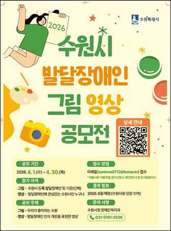 [우리문화신문=이나미 기자] 수원특례시(시장 이재준)가 ‘2026년 수원시 발달장애인 그림ㆍ영상 공모전’을 연다. 지방정부 주관으로 발달장애인 대상 그림ㆍ영상을 함께 공모하는 건 처음이다. 발달장애인의 예술적 재능을 발굴하고, 장애에 대한 인식을 개선하기 위해 마련한 공모전이다.