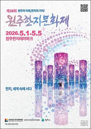 [우리문화신문=윤지영 기자] 원주한지문화제위원회는 오는 5월 1일(금)부터 5일(화)까지, 닷새 동안 원주한지테마파크 일원에서 제28회 원주한지문화제를 연다고 밝혔다. 이번 원주한지문화제는 1,600여 년 전통의 원주한지 값어치를 알리는 한지 문화예술축제이다. 시민과 관광객이 함께 즐길 수 있도록 다양한 프로그램을 마련했다. 올해 주제는 ‘한지, 세계 속에 서다’로, 한지의 전통과 값어치를 나라 안팎에 알리고 시민과 함께 만들어가는 참여형 문화예술 프로그램으로 진행된다. 특히 한지 문화의 유네스코 세계무형문화유산 등재를 향한 의미를 담아 한지의 문화적 값어치를 널리 공유하는 자리로 마련된다.