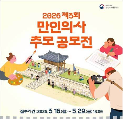 [우리문화신문=한성훈 기자] 국가유산청 만인의총관리소(소장 김성철)는 정유재란 남원성 전투에서 순절한 만인의사의 호국정신을 기리기 위해 5월 29일까지 「2026 제3회 만인의사 추모 공모전」을 연다. 공모전은 남원성 전투와 만인의사에 관심이 있는 대한민국 국민이라면 누구나 참가할 수 있으며, 공모 분야는 학생부(초ㆍ중ㆍ고등학생 개인)를 대상으로 한 그림과 글짓기(시) 부문과 일반부(개인 또는 5인 이내 팀) 대상의 짧은 영상(숏폼) 부문으로 나누어 진행된다.