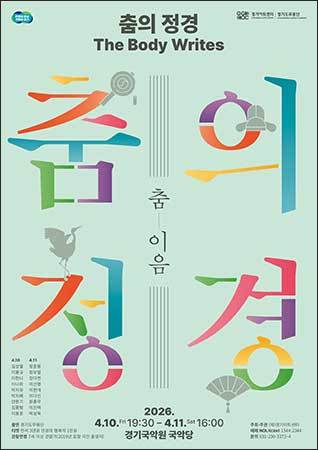[우리문화신문=정석현 기자] 오는 4월 10일부터 11일까지 경기도 수원시 팔달구 효원로 307번길 20. ‘경기국악원 국악당’에서는 ‘경기도무용단’이 군무로 펼쳐온 한국춤이 <춤의 정경, The Body Writes: 춤_이음>이란 이름으로 2026년, 경기도무용단 단원의 '홀춤(독무)'과 '겹춤(이인무)'으로 다시 쓰인다.