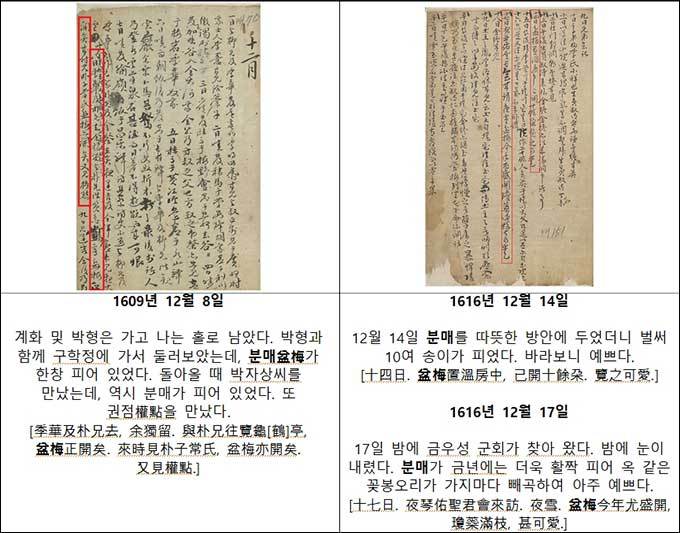 [우리문화신문=윤지영 기자] 한국국학진흥원(원장 정종섭)은 제81회 식목일을 맞아 김광계(金光繼, 1580~1646)의 《매원일기(梅園日記)》를 통해 조선시대 선비의 각별한 꽃 사랑과 그 속에 담긴 인문학적 가치를 조명한다. 김광계는 스스로 ‘매화 동산’이라는 뜻의 ‘매원(梅園)’이라 할 만큼 꽃과 나무를 가까이한 인물로, 식물을 돌보는 기쁨과 위안을 일상에서 실천했다. 그의 기록은 식목(植木)을 단순히 나무를 심는 일에 그치지 않고, 생명을 가꾸며 자신의 마음을 돌보고 이웃과 기쁨을 나누는 일로 확장해 보여준다. 이번 식목일, 한국국학진흥원은 김광계의 기록을 통해 ‘마음의 식목’이 지닌 의미를 함께 되새기고자 한다.