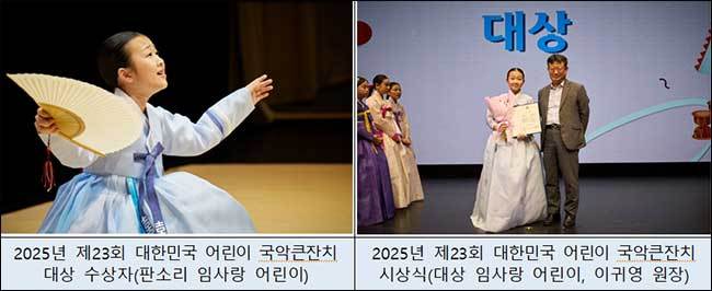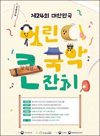 [우리문화신문=정석현 기자] 국가유산청(청장 허민)이 주최하고 국가유산청 산하 국가유산진흥원(원장 이귀영)이 주관하며 교육부와 문화체육관광부가 후원하는 「제24회 대한민국 어린이 국악큰잔치」가 오는 6월 5일부터 11일까지 참가자를 모집한다. 올해로 24회를 맞은 「대한민국 어린이 국악큰잔치」는 국악에 대한 어린이들의 관심을 높이고 미래 전통예술 인재를 발굴하는 자리다. 장관상 수여의 권위와 20년 이상 이어온 역사를 바탕으로 전통예술 인재 등용문 역할을 해오고 있다.