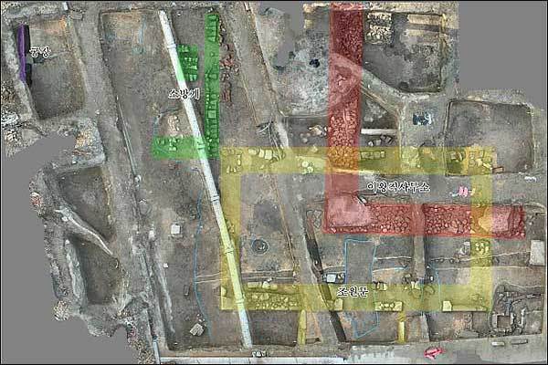특히 이번에 확인된 조원문 유구는 『경운궁 중건배치도』에 기록된 조원문의 배치와 일치하는 것으로 확인되었다. 또한 조원문 주변에서 궁장의 기단, 소방계(消防係), 이왕직사무소 건물의 기초 일부도 함께 확인되어, 근대기 덕수궁 공간 구조의 변화와 활용 양상을 파악할 수 있는 의미있는 학술적 성과로 평가된다.