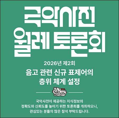 [우리문화신문=정석현 기자] 국립국악원(원장 직무대리 황성운)은 오는 4월 17일(금) 낮 1시 30분, 국립국악원 예인마루 세미나실에서 ‘2026년 제2회 국악사전 월례 토론회’를 연다. 이번 토론회는 '음고 관련 새 올림말의 층위 체계 설정'을 주제로 진행되며, 음고와 관련하여 균형 있는 표제어 체계를 마련하기 위한 자리다.