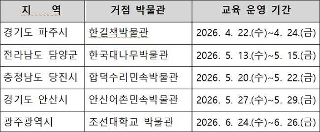 □ 2026년 상반기, 5개 지역 거점 박물관과 협력 운영