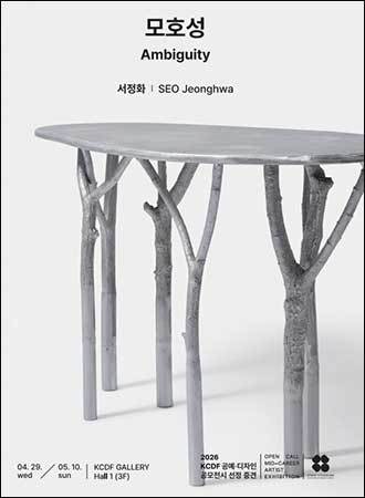 2026년 공모전시의 본격적인 첫 장은 중견 부문의 서정화 작가의 개인전으로 연다. 서정화 작가는 4월 29일부터 5월 10일까지 KCDF갤러리 1전시실에서 《모호성(Ambiguity)》을 주제로, 금속가구 신작을 선보인다. 개별 재료의 본질적인 특성에 주목해 다양한 소재의 조합과 병치를 탐구해 온 작가는, 이번 전시에서 재료 간의 경계가 흐려지는 동적인 변화와 시간성에 주목한다. 이를 위해 자연을 상징하는 나뭇가지와 인공적인 금속 재료를 결합하여, 사물을 규정하는 고정관념을 흔들고 재료를 새롭게 느끼는 경험을 제안한다.