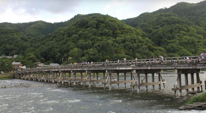 도월교가 놓인 가츠라강 하류는 강이라기보다는 큰 냇물 같은 느낌의 아담한 크기였는데 상류 쪽은 물을 가둔 보(洑)가 있어 제법 강 분위기가 느껴졌다. 다리 길이 250m인 도월교는 건너편 표고(標高) 375m의 아라시야마(嵐山)의 단풍과 벚꽃이 아름다워 예부터 시인 묵객과 귀족들이 넘나들던 다리다.