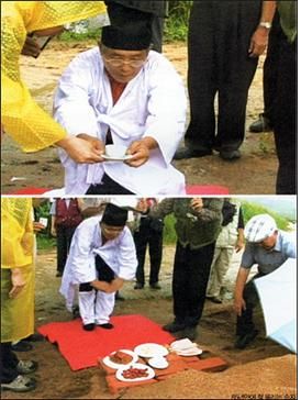 ▲ 할아버지 권기일 선생 손자 권대용 씨는 85년 만에 중국땅을 밟아 할아버지가 순국한 곳에 엎드려 큰절을 올린다.