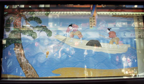 ▲ 백제인 히노구마형제가 어망에 불상을 건지는 그림
