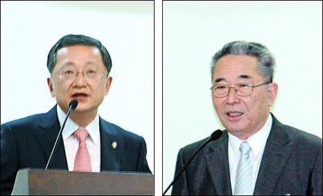 ▲ 개회사를 하는 김재경 국회의원(왼쪽)과 축사를 하는 김종택 한글학회장