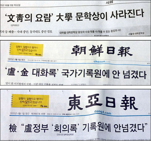 | ▲ 저렇게 "文靑"이라고 한자로 쓰면 이해하기 쉬울까?(위), 조선일보와 동아일보는 여전히 한자를 섞어서 쓴다. | ||
