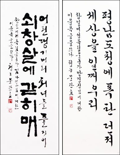 이러한 여성독립운동가들이 활약했던 곳을 찾아다니며 헌시를 써서 그 일생을 알리는 작업을 하는 이윤옥 시인의 시에 청농 문관효 서예가가 묵향 짙은 서예작품을 써서 전시하는 <제95주년 삼일절 기념 항일여성독립운동가 33인 시서전(詩書展)>이 오는 26일부터 3월 4일까지 서울 국악로 “갤러리 일호”에서 열린다. 이번 시서전에는 황거를 폭격하려던 한국 최초의 여류비행사 권기옥, 수원의 논개 33인의 꽃 김향화, 무명지 잘라 혈서 쓴 남자현, 평남도청에 폭탄 던져 세상을 일깨운 안경신 등 33인의 여성독립운동가들이 소개된다.