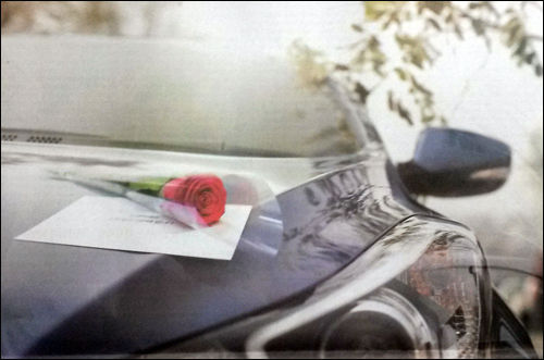 신문에 현대자동차 광고가 났습니다. 먼저 아반떼 차 본닛 위에 적바림 한 장과 장미 한 송이가 놓여 있네요. 아주 느낌이 좋습니다. 그리고 그 아래 "장미 한 송이로 당신의 얼굴을 활짝 펼 수 있다면"라는 제목과 함께 "가슴 뛰는 모든 이들에게 2014년 3월, 스무 살 생일을 맞은 아반떼"라며 편지를 씁니다. 여기까지 나는 아름다운 광고 한 편을 보고 있었습니다.