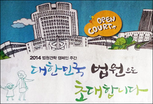 오는 4월 25일은 "법의 날"입니다. 이날 앞뒤 2주간은 2014 법원견학 캠페인 주간이라고 합니다. 그래서 대한민국 법원이 시민들을 초대한다네요. 한글로 홍보 하는 것이 기분 좋습니다.