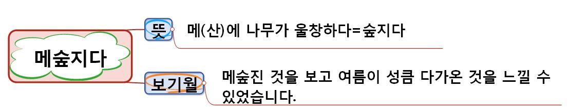 - 여름이 되니 온통 산들이 메숲져 있다. (고려대 한국어대사전)