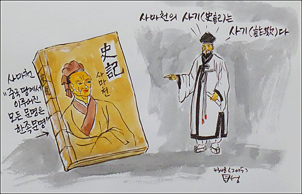 ▲ “중국 땅에서 이루어진 모든 문명은 한족문명”이라고 쓴 사마천의 사기(史記)는 사기(詐欺) - 그림 이무성 한국화가