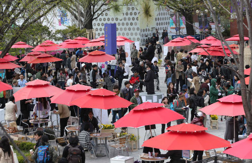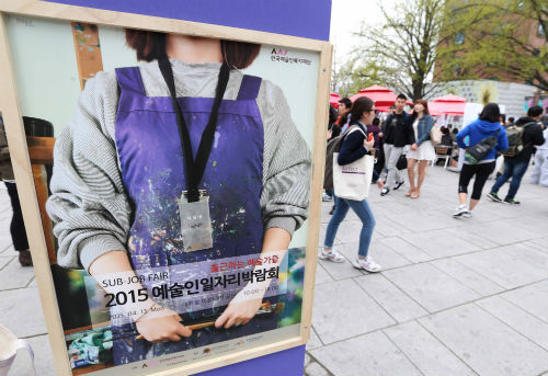 13일 서울 대학로 마로니에 공원에서 ‘2015 예술인일자리박람회’가 열려 구직자들로 붐비고 있다. 이 행사는 예술인복지재단이 운영하고 있는 주요 복지사업 중 하나인 ‘예술인 파견 지원’ 사업을 위해 처음 실시하는 대규모 ‘예술인 일자리 만들기’ 프로젝트이다.