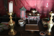 [우리문화신문=양종승 박사] 구파발 금성당에는 신도(神圖) 이외에도 여러 다양한 귀물(鬼物)이 있었다. 이 유물들은 현재 서울시립박물관 수장고에 있다. 그 내용을 보면 1) 문서(文書)류 - 서진관금성당인등시쥬책(西津寬錦城堂引燈施主冊), 천지팔양신주경(天地八陽神呪經), 유마경(維摩經), 유마힐소설경 2) 신도(神圖)류 - 맹인도사(盲人道師), 맹인삼신마누라(盲人三神), 삼궁애기씨, 중불사, 창부광대씨(倡夫廣大), 별상님, 말서낭, 삼불사할머니 3) 신복류 - 관모(冠帽)류, 치마저고리류, 포(袍)류, 수식류이다. 관모로는 黑笠(흑립), 고깔, 전모(벙거지), 큰머리가 있으며, 포(袍)류에는 원삼, 두루마기, 동다리, 철릭, 몽두리, 장삼, 전복이고, 수식류으로는 염낭주머니, 한삼, 제비부리댕기, 대대(大帶, 남자의 심의와 여자의 원삼에 띠던 넓은 띠)다. 이들을 난곡(蘭谷)의 《무당내력》에 나오는 신복과 비교해 보았을 때 그 형태가 동일하며, 제작 시기는 1900년대 전후가 된다. 4) 고비전류 5) 명두(明斗, 놋쇠로 만들어진 둥근 거울 형태로 무당이 신의 얼굴로 간주하는 신령스러운 무구)류 - 일월명두, 일월대명두, 불사에 일월명두, 셰인삼발명두, 칠성명